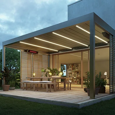 Genießen Sie auf Ihrer Terrasse ganzjährig einen zuverlässigen Schutz vor Sonne, Wind und Regen. Das robuste Lamellendach begeistert durch filigrane Formen und garantiert dank drehbarer Lamellen höchsten Nutzerkomfort. Eine große Auswahl an innovativen Extras sorgt für maximale Individualität. Für ein echtes Plus an Lebensqualität!