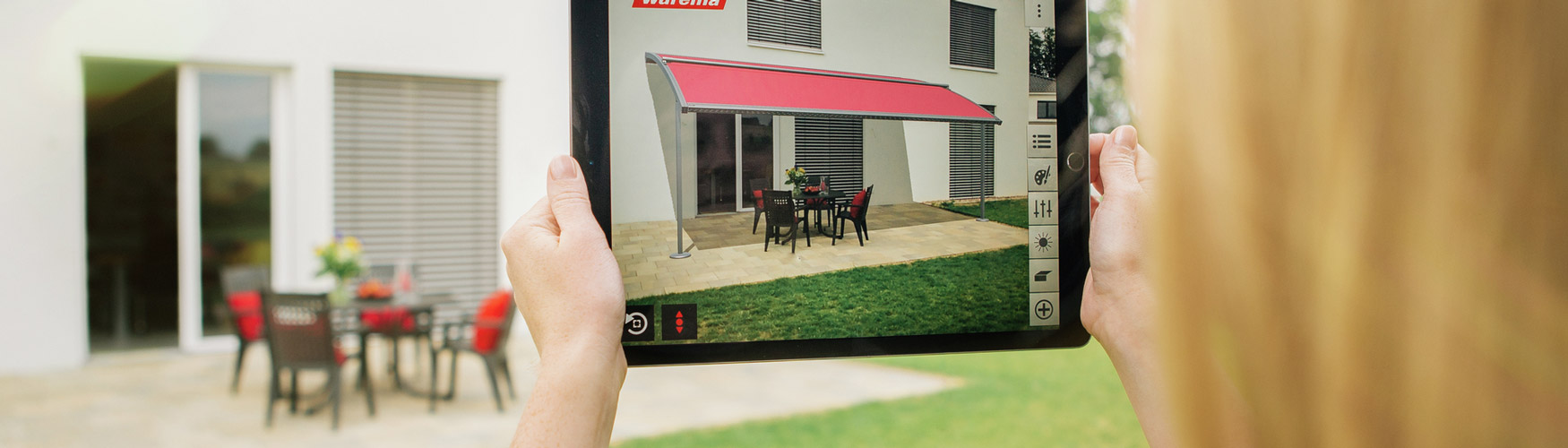 Erleben Sie mit unserer preisgekrönten AR-App alle Outdoor Living Produkte über ihr Tablet oder Handy direkt auf ihrer Terrasse.
